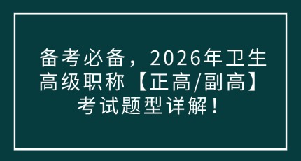 俗话说“知己知彼、百战不殆”首先跟随直达100小编去了解一下卫生高级职称【正高/副高】考试题型,帮助大家有目标、有方向,的学习!建议备考的主任们收藏起来呀!